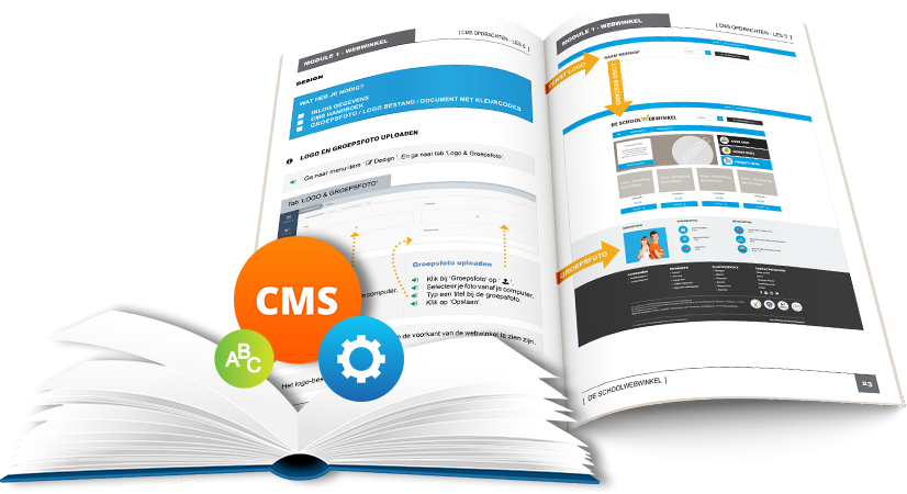 - De opdrachten om de webshop in te richten en te beheren staan duidelijk en overzichtelijk met afbeeldingen weergegeven in de CMS-handleiding. Deze staat online in de ELO en is ook te koop in boekvorm.