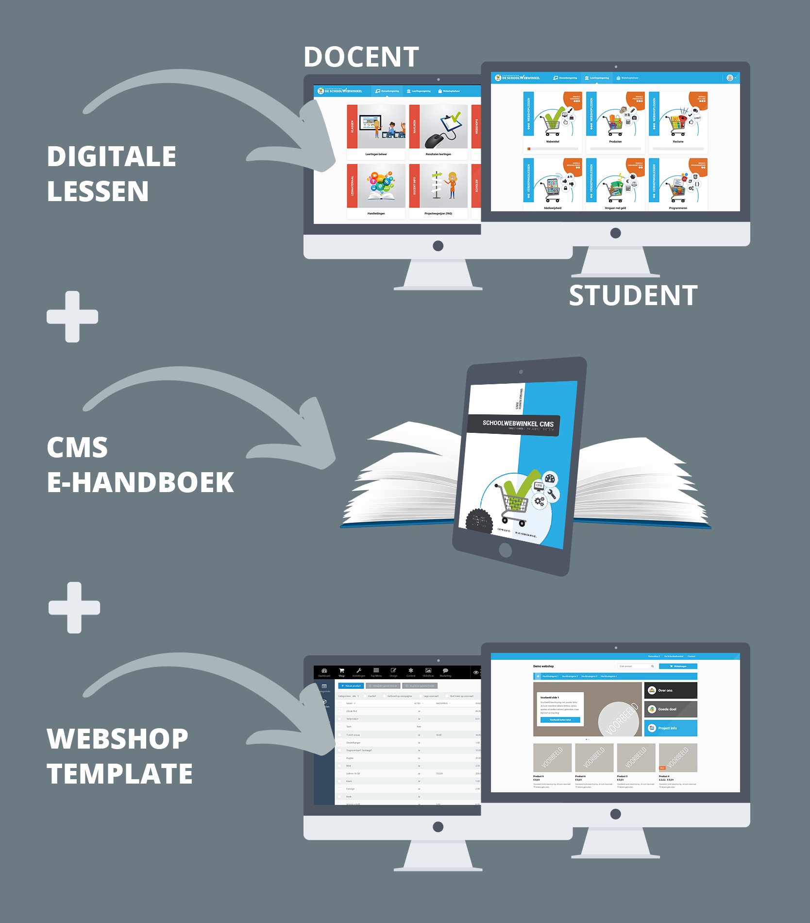 - Beheerderslicentie + toetsen + powerpoints + leerlingshops + CMS handleiding + praktijkopdrachten + theorie